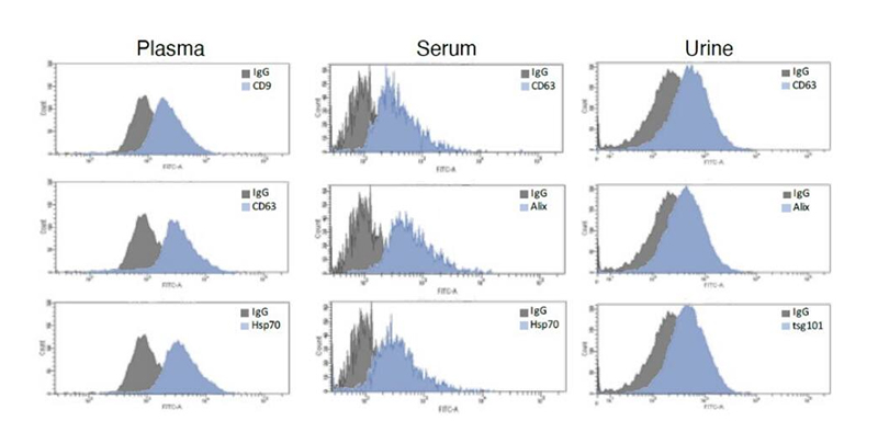 시약 및 기기 상세 [Novus] 엑소좀 정제 시약 | evGAG - Extracellular Vesicles Purification Kit Maker : NOVUS BIOLOGICALS 혈장, 혈청, 소변 등 다양한 biofluids로부터 EV, 특히 엑소좀(Exosomes)을 신속하고 효율적으로 정제하기 위한 시약입니다. 프린트 제품 문의 특징 복잡하고 시간이 오래 걸리는 초원심분리(Ultracentrifugation) 없이, biofluid에서 EVs를 빠르고 간단하게 분리 및 정제하기 위한 시약입니다.혈장, 혈청, 소변, 뇌척수액, 기관지폐포세척액 (BALF)등 다양한 생체 시료에 적용됩니다.총 소요시간은 20분입니다.정제된 EV는 pellet 형태로 회수됩니다. 20번 사용할 수 있는 양의 evGAG liquid가 제공됩니다. evGAG 키트로 정제된 EVs 펠렛은 적절한 완충액(예: PBS 1x)으로 재현탁한 후, WB, ELISA, Flow cytometry, mRNA, NGS등 다양한 분석에 바로 사용할 수 있습니다. 원리 EVs (엑소좀 포함)의 표면에는 글리코사미노글리칸(Glycosaminoglycans, GAGs)이라는 음전하를 띠는 물질이 존재합니다. evGAG 시약은 특정 양전하를 띠며, EVs 표면의 음전하와 반응하여 GAGs를 중화시킵니다.전하가 중화되면서 EVs가 서로 응집되어 큰 복합체(complex)를 형성합니다. 형성된 응집체는 저속 원심분리(3,000g 정도)만으로도 펠렛 형태로 쉽게 분리됩니다. 데이터Flow Cytometry: evGAG - Extracellular Vesicles Purification Kit [NBP3-41044] - Analysis of EVs isolated using evGAG from 50 ul of plasma or serum and 3 ml of urine. Primary antibodies used in the example: anti-CD9, anti-CD63, anti-ALIX (Catalog # NBP3-18364), anti-TSG101, anti-HSP70. evGAG - Extracellular Vesicles Purification Kit [NBP3-41044] - Nanoparticle tracking analysis (NTA) image of urine isolated EVs showing particle size (nm) and concentration (particles/ml) comparing EVs isolated by (A) ultracentrifugation or by (B) evGAG. 주문정보 견적문의 제품담기 주문정보 - Cat No, PRODUCT, SIZE, 수량 등 항목으로 구성되어있습니다. Product Cat.No. Size Maker Qty Data Sheet MSDS evGAG - Extracellular Vesicles Purification Kit (1 Kit) NBP3-41044 1 Kit NOVUS BIOLOGICALS - + 보기 보기 1 Maker NOVUS BIOLOGICALS Cat.No. NBP3-41044 Product evGAG - Extracellular Vesicles Purification Kit (1 Kit) Size 1 Kit Qty - + Data Sheet 보기 first 1 last 추천제품 [Novus] Exosome Isolation | 엑소좀 분리 컬럼, 비드, 침전용액 [Novus] Exosome Detection Antibody Pack [Novus] Exosome RNA (Pre-Isolated Exosomes) Extraction Kit [Novus] Exosome Standards 엑소좀 리피도믹스 분석 | Exosome Lipidomics 관련제품 견적문의 제품담기 주문정보 - Cat No, PRODUCT, SIZE, 수량 등 항목으로 구성되어있습니다. Product Cat.No. Size Maker Qty Data Sheet MSDS 자료 웨비나/Video