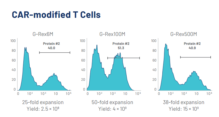동일한 프로토콜로 1천만~100억 개의 세포까지 배양 가능하여, 소규모 G-Rex 장비로도 모델 개발, 공정 반복 실험, 시약 검증 등을 빠르게 진행 가능.