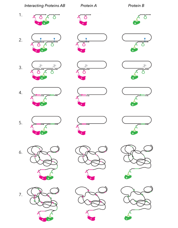 시약 및 기기 상세 [Novus] MolBoolean Mouse/Rabbit Assay Kit Maker : NOVUS BIOLOGICALS 세포 또는 조직 내에서 두가지 단백질의 개별 염색 및 두 단백질 간의 상호작용, 근접 여부를 확인할 수 있습니다. 프린트 제품 문의 특징 세포나 조직 내에서 두 개의 관심 단백질이 서로 근접해 있는지(약 40nm 이내) 확인하고 정량하는 데 이용하는 시약입니다.단백질 A, 단백질 B, A+B의 상호 작용 복합체, 3가지 상태를 동시에 정량할 수 있습니다.두가지 형광 리포터를 이용하여 590nm, 664nm에서 확인합니다.Rolling Circle Amplification (RCA)라는 증폭 방법을 사용하여, 신호 감도가 높고 미세 상호작용도 검출할 수 있습니다.120 cell assays (40 µl/assay) 혹은 60 tissue assays (80 µl/assay)가 가능합니다. Kit 구성품 Additive (40x)Blocker (4x)Buffer A (10x)Buffer B (8x)Buffer C (5x)Buffer D (10x)Circle (40x)Detection oligos (40x)Diluent (1x)Ligase enzyme (80x)Nickase enzyme (80x)Polymerase enzyme (40x)Probe A (80x)Probe B (80x)Tag oligos (40x) 실험 과정 1차 항체가 세포 내 단백질 A, B에 결합두 항체에 연결된 proximity probe가 DNA circle과 hybridizationDNA circle에 nicking (절단)Tag oligo 삽입 및 ligationRCA (rolling circle amplification) 수행 → 많은 복제된 DNA concatemer 생성형광 표지된 태그 oligo가 증폭된 DNA에 결합 → 형광 신호 검출free 단백질의 경우에는 단일 형광 신호를, A‑B 복합체의 경우에는 두가지 형광이 겹쳐 나타남 데이터 MolBoolean analysis of the interaction between E-cadherin (cat. NBP2-34475, magenta) and B-catenin (cat. NBP1-89989, green) in MCF7 cells, showing the relative quantification of free versus interacting protein fractions, indicated by the detection of rolling circle products (RCPs) in either one or two fluorescent channels. Data is normalized to total target protein levels (total RCPs). MolBoolean analysis of the interaction between ACE2 (cat. NBP2-59036, magenta) and TMPRSS2 (cat. NBP2-38263, green) in human kidney, showing the relative quantification of free versus interacting protein fractions, indicated by the detection of rolling circle products (RCPs) in either one or two fluorescent channels. Data is normalized to total target protein levels (total RCPs) 주문정보 견적문의 제품담기 주문정보 - Cat No, PRODUCT, SIZE, 수량 등 항목으로 구성되어있습니다. Product Cat.No. Size Maker Qty Data Sheet MSDS MolBoolean™ Mouse/Rabbit Assay Kit MolB00001 1 Kit NOVUS BIOLOGICALS - + 보기 보기 1 Maker NOVUS BIOLOGICALS Cat.No. MolB00001 Product MolBoolean™ Mouse/Rabbit Assay Kit Size 1 Kit Qty - + Data Sheet 보기 first 1 last 추천제품 [Novus] IHC Tissue Slides RNA In situ hybridization (ISH) 분석서비스 Immunohistochemistry 시약 (Coverslip Sealant, PAP Pen) 세포 염색시약 가이드 | Live Cell Staining Dye [R&D Systems] Avi-tag, Amine-Labeled Biotinylated Proteins 관련제품 견적문의 제품담기 주문정보 - Cat No, PRODUCT, SIZE, 수량 등 항목으로 구성되어있습니다. Product Cat.No. Size Maker Qty Data Sheet MSDS 자료 웨비나/Video
